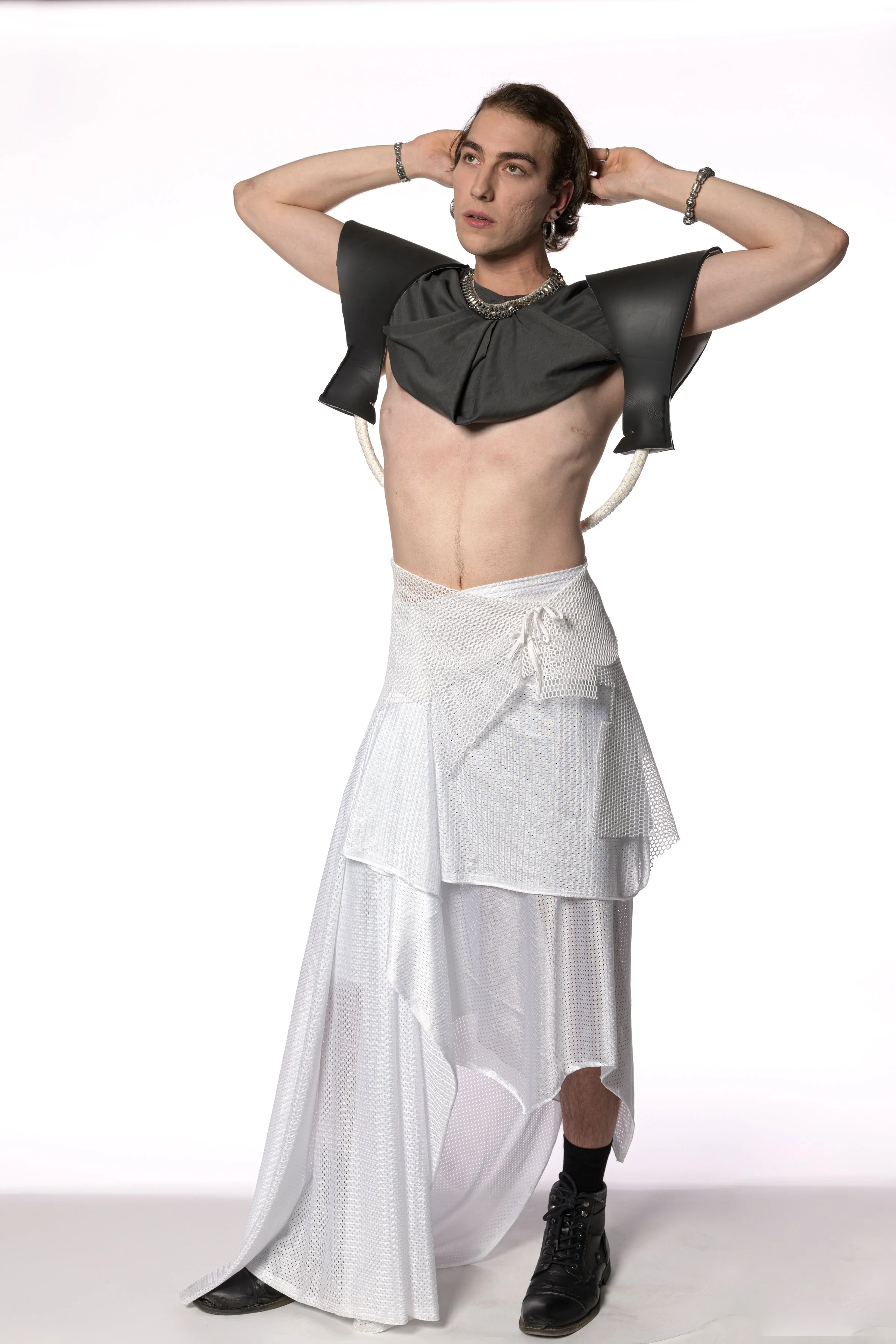 Up-cycled fashion piece for ReFashioned 2022 at UIUC. This is a collaboration piece where we combined two concepts -- melt and freeze. This ensemble was created in 3 days. View fullsize